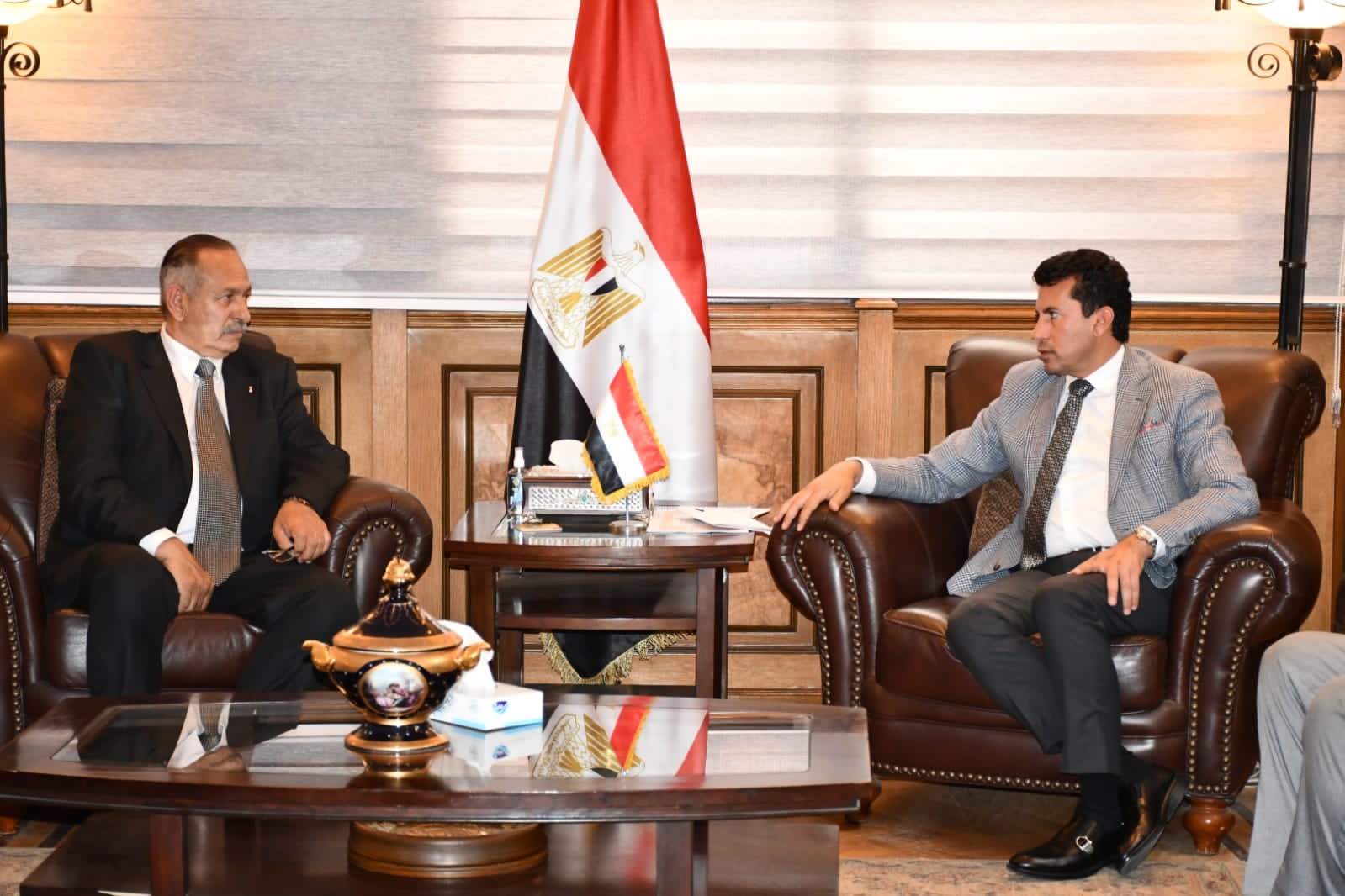 جاء ذلك خلال جلسة مباحثات عقدها وزير الشباب والرياضة مع الدكتور محمد الأمين رئيس الاتحاد المصرى لكرة اليد فى حضور عدد من قيادات الوزارة.