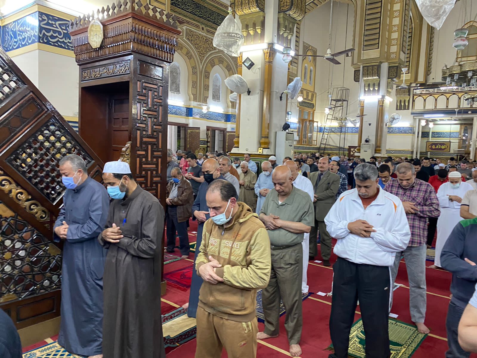ملتزمون بالتباعد.. صلاة التراويح داخل مسجد النصر بالمنصورة| صور