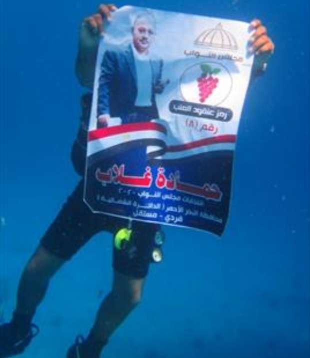 كما قام احد المرشحين ب ارتداء بدلة غطس وغاص بها في قاع البحر الأحمر بين الأسماك والشعاب المرجانية حاملا دعايته الإنتخابية وبوستر يحمل صورته ورمزه الانتخابي لتصل الرسالة إلى الناخبين من الأعماق.