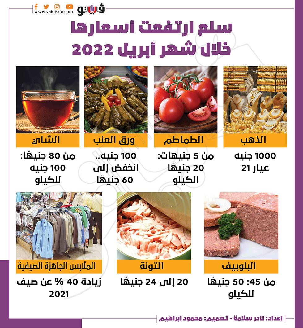 سلع ارتفعت أسعارها خلال شهر أبريل 2022| إنفوجراف الإثنين 18/أبريل/2022 - 11:40 م 4/18/2022 11:40:51 PM السلع نادر سلامة شارك طباعة 18 حجم الخط شارك طباعة ورق العنب الطماطم طماطم سلع الشاي السلع
