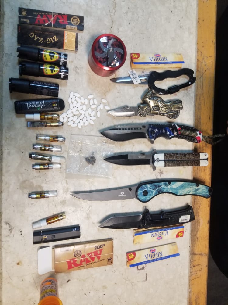 واضافت المصادر أنه بعرض الأمر أحمد سيد مدير الحركه المشرف علي الصالة، والذي طلب من الراكب وضع حقائبه علي جهاز الكشف بالاشعة تحت إشراف عماد جاب الله مأمور الفحص بالاشعه، والذي افاد بوجود كثافات واجسام معتمة، وبالعرض علي تامر قاسم نائب مدير الإدارة، كلف أحمد سيد مدير الحركة، وأحمد سعيد السيد مأمور الجمرك، بتفتيش حقائب الراكب، فتبين وجود ٦ مطاوى مختلفة الأشكال والأحجام وكيس شفاف بلاستيك بداخله عشرون بذره من بذور المرجوانا المخدر و٨ عبوة زيت من نبات المرجوانا المخدر وعلبة بلاستيك صغيره بها ٤٥ قرص ترامادول مخدر و٣ بخاخ رادع (self-defence).