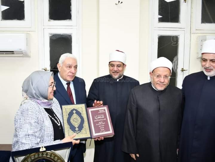 وفي ختام اللقاء أهدى وزير الأوقاف نسخًا من المنتخب مترجمًا إلى اللغة الإندونيسية للأستاذة الدكتورة أماني لوبيس رئيس جامعة شريف هداية الله الإسلامية الحكومية بجاكرتا بإندونيسيا، وجميع أعضاء الوفد المرافق من نواب رئيس الجامعة بأندونيسيا.