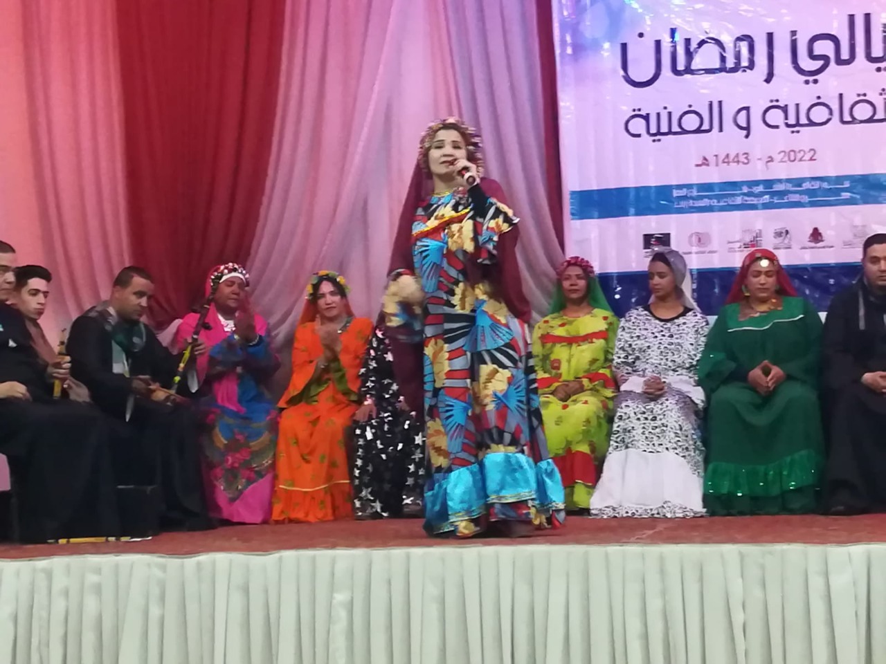 وبعد انتهاء فقرة الإلقاء، قدمت فرقة النيل للآلات الشعبية عدة فقرات غنائية واستعراضية على أغاني شهر رمضان الكريم.