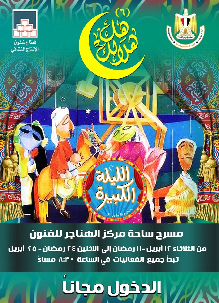 كما يستمتع الجمهور برائعة الشاعر صلاح جاهين، والموسيقار سيد مكاوى، أوبريت "الليلة الكبيرة"، الذى يقدمه البيت الفنى للمسرح برئاسة المخرج إسماعيل مختار، من إنتاج فرقة مسرح القاهرة للعرائس برئاسة الفنان محمد نور، ديكور مصطفى كامل، تصميم عرائس للدكتور ناجى شاكر، وإخراج صلاح السقا.