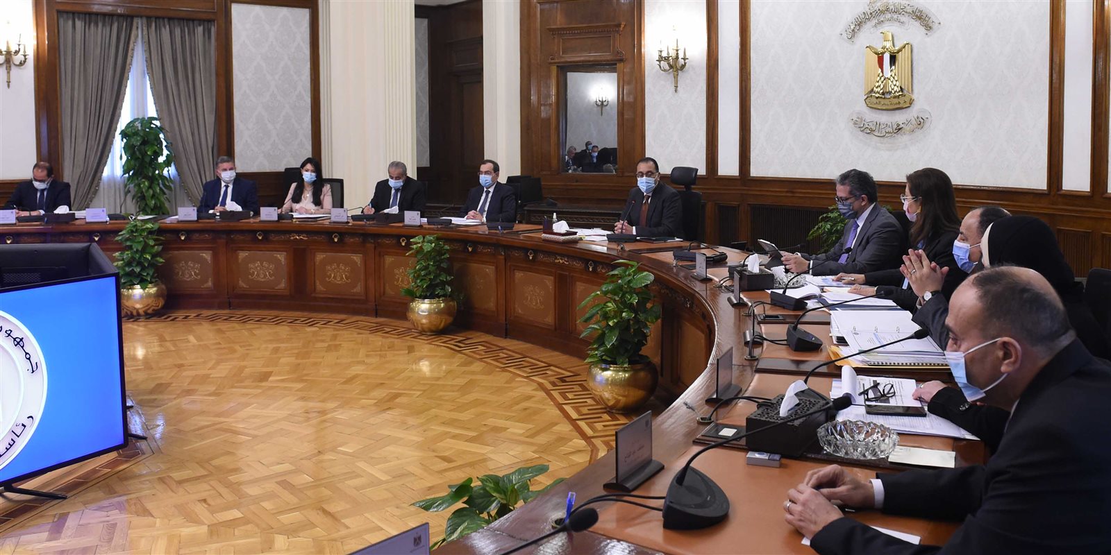 وصرح السفير نادر سعد، المتحدث الرسمي لرئاسة مجلس الوزراء، بأنه تم خلال الاجتماع استعراض نتائج الإجراءات المالية والنقدية التي تتخذها الدولة المصرية للتعامل مع التداعيات الاقتصادية السلبية للأزمة العالمية الجارية، والتأكيد على استمرار التقييم والمتابعة لمستجدات الوضع الدولي، وأثرها على أسعار السلع والخامات ومستلزمات الإنتاج، مع التأكيد كذلك على التنسيقات التي تتم بين الحكومة والبنك المركزي لفتح الاعتمادات المطلوبة لاستيراد السلع الأساسية والضرورية ومستلزمات الإنتاج.