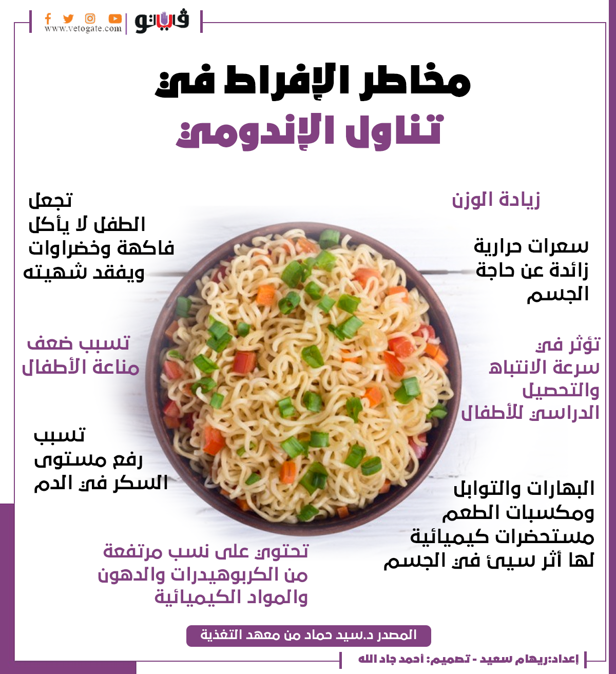 مخاطر الإفراط في تناول الإندومي | فيديوجراف الأربعاء 13/أبريل/2022 - 01:11 م 4/13/2022 1:11:48 PM إندومي ريهام سعيد شارك طباعة 18 حجم الخط شارك طباعة الاندومي معهد التغذية مناعة الأطفال سعرات حرارية الكربوهيدرات السكر في الدم الشعرية سريعة التحضير