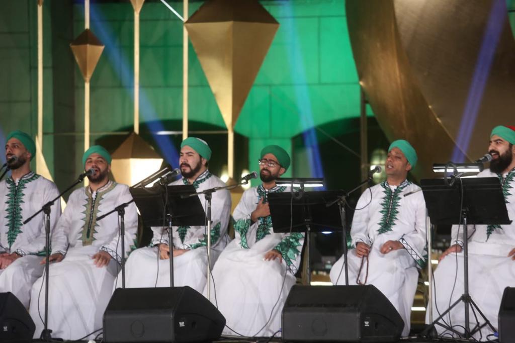 فعلى مسرح النافورة الذى تجمل بديكورات استلهمت الطابع الإسلامى بشكل حديث خلقت فرقة الحضرة للإنشاد الصوفى حالة من السمو الوجدانى تفاعل معها الحضور حيث قدمت مجموعة من المدائح التراثية الصوفية والذكر كان منها القصيدة المحمدية، عودي يا ليالي الرضا، لو صفالي الوقت يوما، أيها المشتاق لا تنم، يا إله الكون إنا لك صومنا، إسمع مديح النبي ترتاح، يا من خلقت الورى، صلى عليك الهادي، إليك إشاراتي، حُبُ النبي، نحن في ساحة الحسين ومدد يا سيدة.