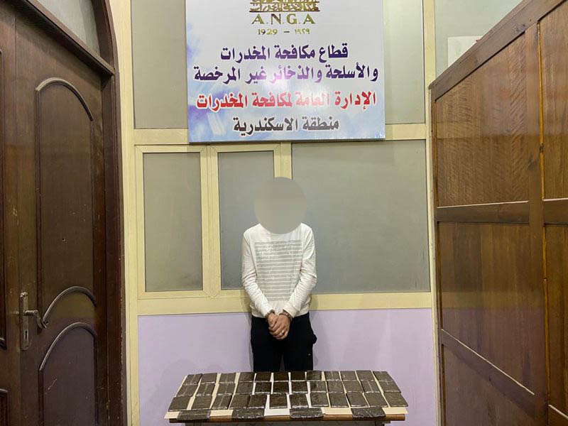 ضبط ( أحد الأشخاص، له معلومات جنائية، مقيم بدائرة قسم شرطة محرم بك) حال تواجده بدائرة القسم، وبحوزته (40 طربة لمخدر الحشيش وزنت 4 كيلو جرام – مبلغ مالى – هاتف محمول).