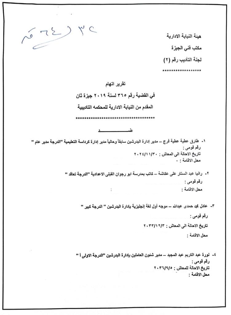 قررت النيابة الإدارية في القضية رقم 32 لسنة 64 قضائية عليا إحالة مدير عام إدارة كرداسة التعليمية و12 مسؤولًا بإدارة البدرشين التعليمية للمحاكمة التأديبية العاجلة بعد ثبوت إرتكابهم مخالفات مالية وإدارية وقانونية جسيمة خلال الفترة من مارس 2016 حتى يوليو 2018