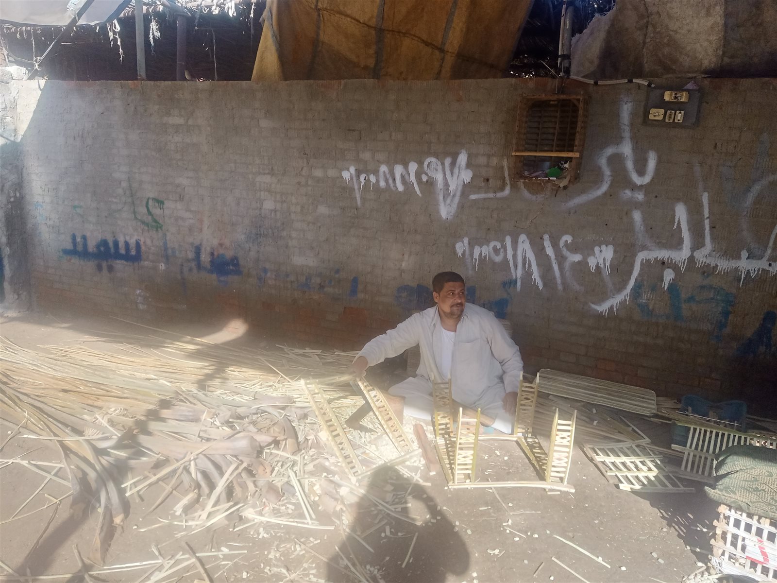 ايده تتلف في حرير.. صابر سعد يصنع الأثاث وأقفاص الفاكهة من جريد النخل بالدقهلية| فيديو وصور