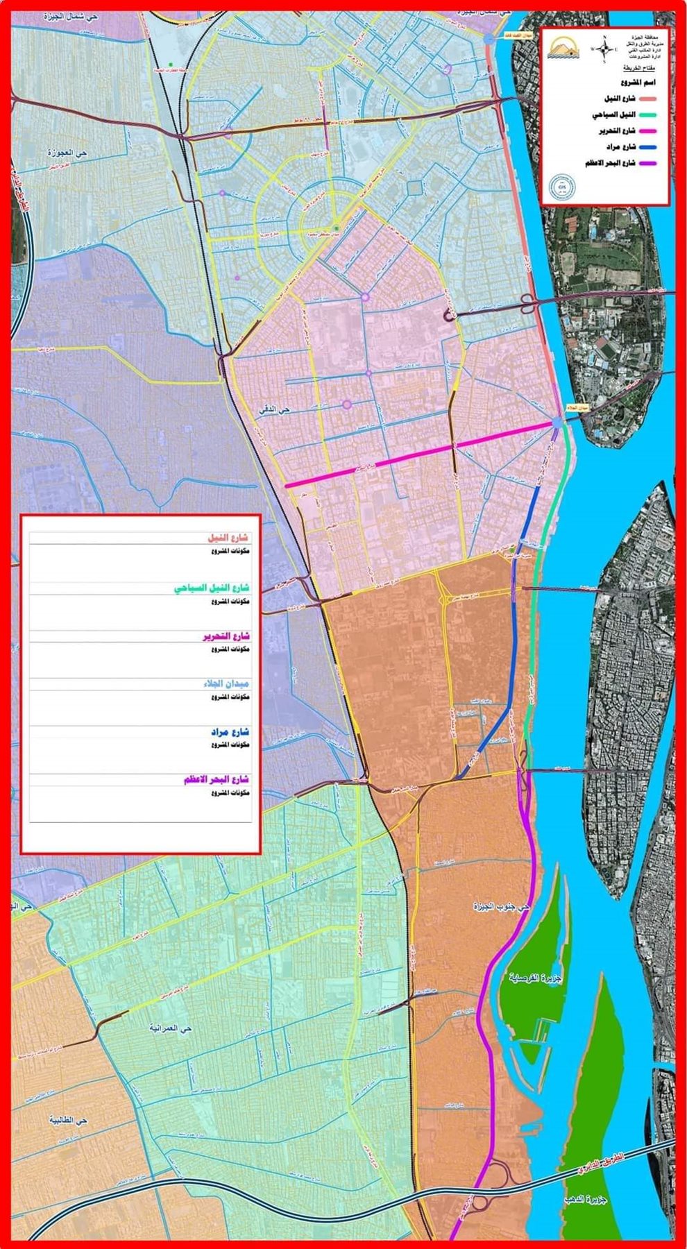 ننشر خريطة أعمال التطوير فى ميدان الجلاء ومتفرعاته: (شارع مراد والنيل السياحى وشارع النيل باتجاه ميدان الكيت كات وشارع التحرير)، والتي يتم تنفيذها من قبل المكتب الفني بمديرية الطرق، وبتوجيهات المهندسة نجوى السعيد مدير مديرية الطرق والنقل بالجيزة.