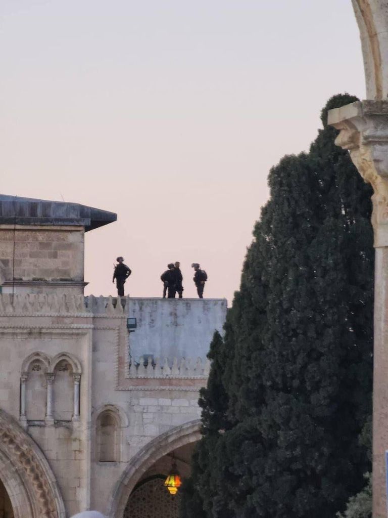 واقتحمت قوات كبيرة من شرطة الاحتلال الإسرائيلية ساحاتِ المسجد الأقصى بعد انتهاء صلاة الفجر، وأطلقت قنابل صوتية، وأجبرت مصلين على مغادرة المسجد.