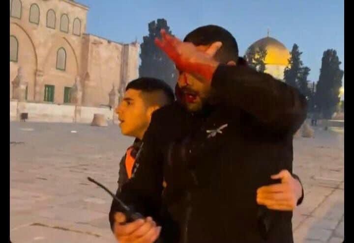 وأخلت القوات بالقوة ساحات الاقصى واعتدت على المصلين وبينهم المئات من كبار السن بالضرب بالهراوات.