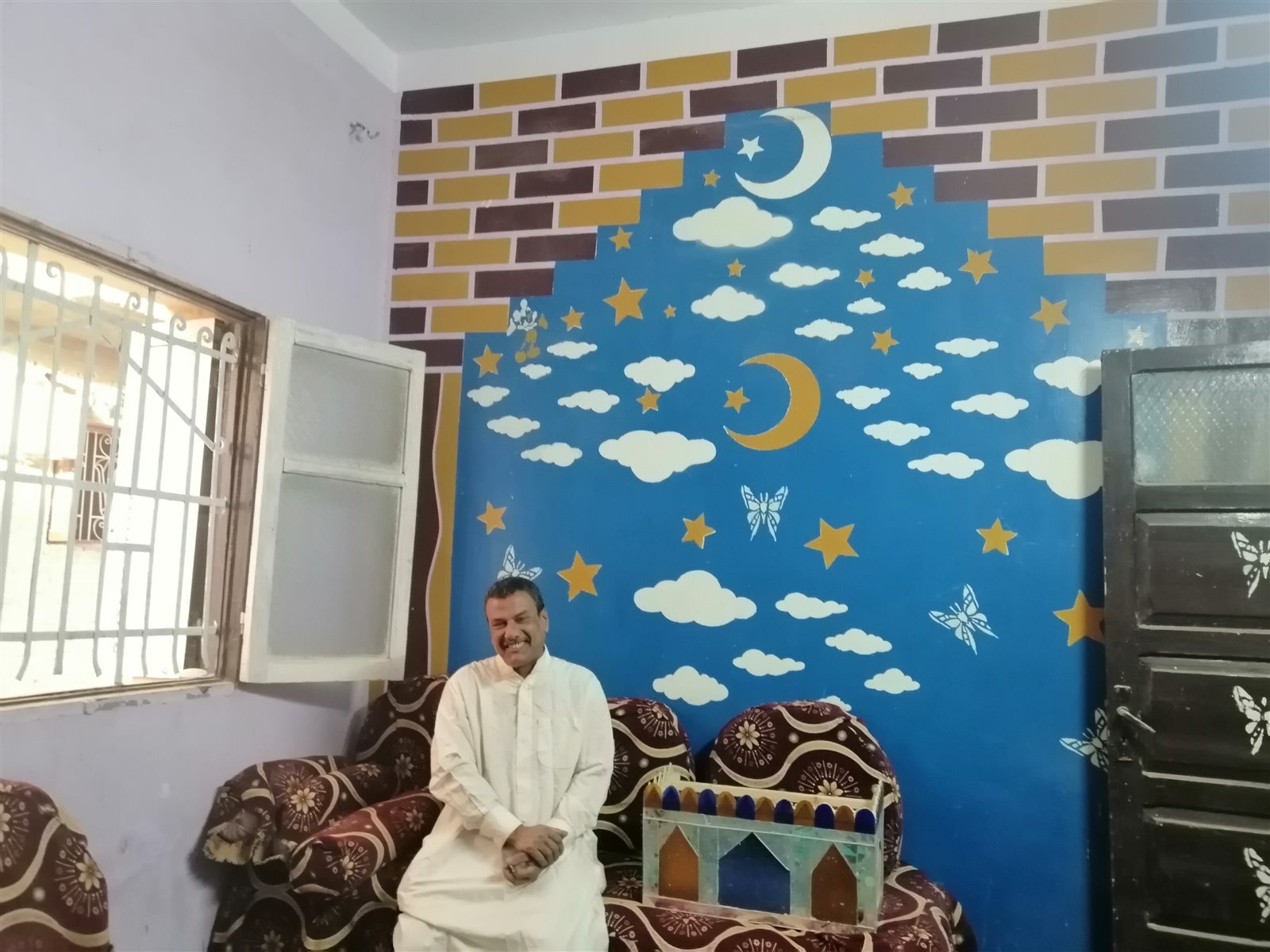 وتابع: وكما ذكرت من قبل كان تحدي مع النفس واجتهاد كبير وهذا دائما مستوي تفكيري في العمل عندما أكون في طلب عمل لا انظر الي الامر علي أنه لقمة عيش بقدر ما يكون فن يستمتع به من يشاهده ويتغزل فيه كل شخص يشاهده فهذا العمل باقي ويصعب أن يحدث له شيء وذلك لشدة ومتانة الادوات المستخدمة في اتقان العمل.