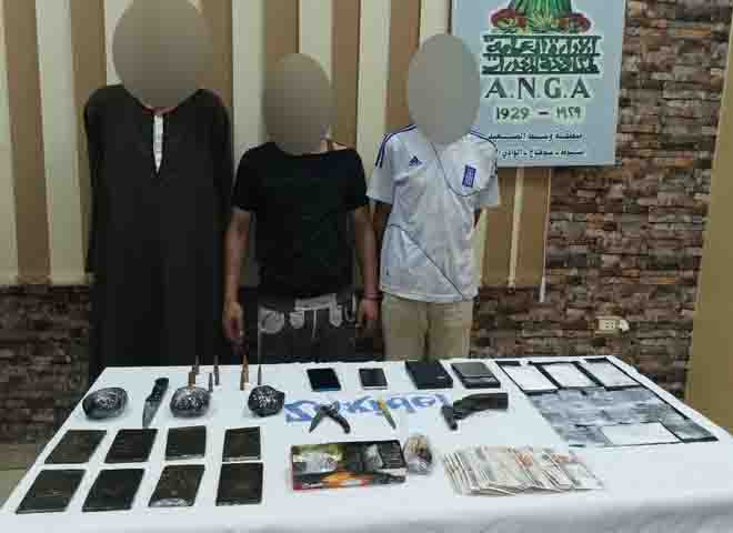 وتم ضبط ( 8 طربة لمخدر الحشيش وزنت 1 كيلو جرام – كمية لمخدر الأفيون وزنت 1 كيلو جرام – كمية لمخدر الأيس "الشابو" وزنت 750 جرام – فرد محلى– عدد من الطلقات النارية – سيارة – عدد 3 سلاح أبيض – عدد 2 ميزان حساس – أدوات تعاطى – مبلغ مالى – عدد 2 هاتف محمول) بحوزة ( ثلاثة من العناصر الإجرامية، لهم معلومات جنائية) حال تواجده بمسكن أحدهم بدائرة مركز شرطة جزيرة شندويل.
