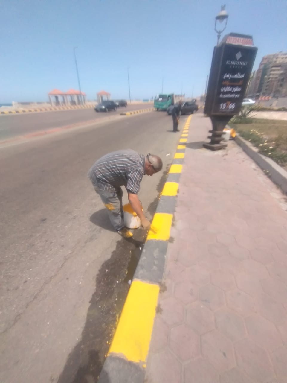 جاءت الأعمال وفقا لتكليفات عزة سعد رئيس حي وسط، وتتم فيها دهانات البردورات بطريق الكورنيش من الجانبين والجزيرة الوسطى.