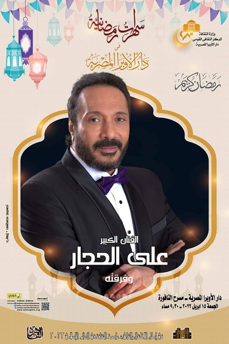 يحيى الفنان الكبير على الحجار سهرة رمضانية علي مسرح النافورة بساحة دار الأوبرا في التاسعة والنصف مساء اليوم الجمعة 15 أبريل..