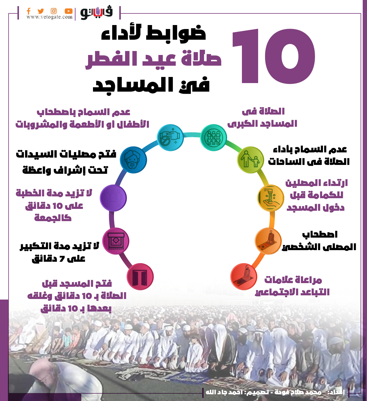 10 ضوابط لأداء صلاة عيد الفطر في المساجد | إنفو جراف السبت 16/أبريل/2022 - 11:00 م 4/16/2022 11:00:53 PM صلاة العيد محمد صلاح فودة شارك طباعة 18 حجم الخط شارك طباعة المساجد الكبرى صلاة العيد مصليات السيدات صلاة الجمعة