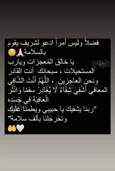 كما كتبت زوجة اللاعب دعاءً لنجلها قائلةً: "الله يا خالق المعجزات.. ويا رب المستحيلات.. أنت القادر، ونحن العاجزون.. اللهم اشف طفلي.. وانثر العافية في جسده".