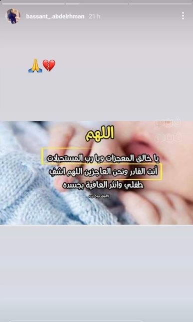 نشرت بسنت عبد الرحمن، زوجة محمد شريف لاعب النادي الأهلي، على صفحتها الشخصية عبر موقع "إنستجرام" صورةً لنجلها شريف، وعلقت: "فضلًا وليس أمرًا.. ادعوا لشريف".