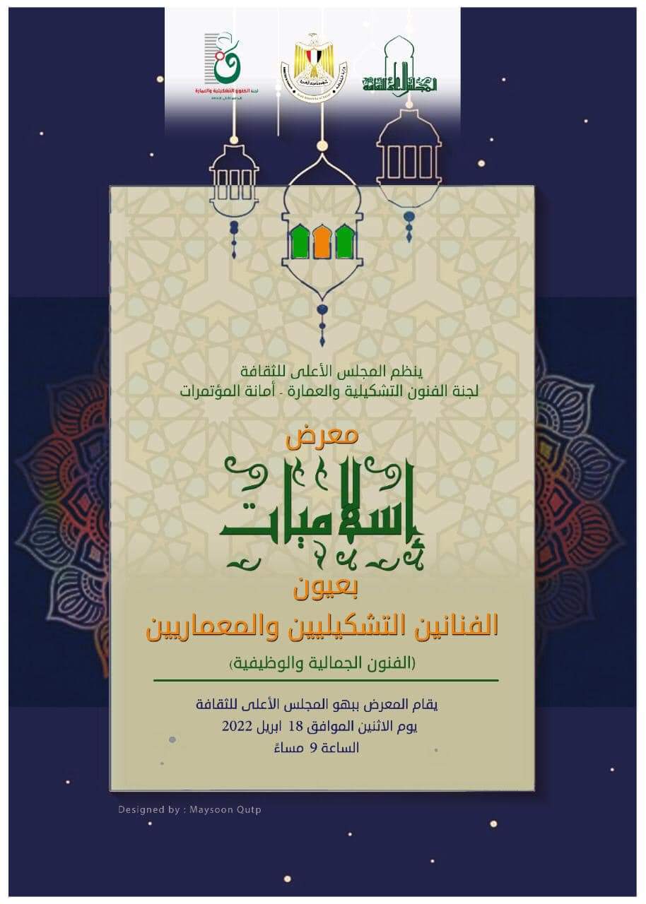 يفتتح المجلس الأعلى للثقافة بأمانة الدكتور هشام عزمي، معرض" إسلاميات بعيون الفنانين التشكيليين والمعماريين"، والذى تقيمه لجنة الفنون التشكيلية والعمارة ومقررتها الدكتورة سهير عثمان، وذلك في تمام الساعة التاسعة مساء يوم الإثنين الموافق 18 أبريل الحالي ببهو المجلس الأعلى للثقافة.