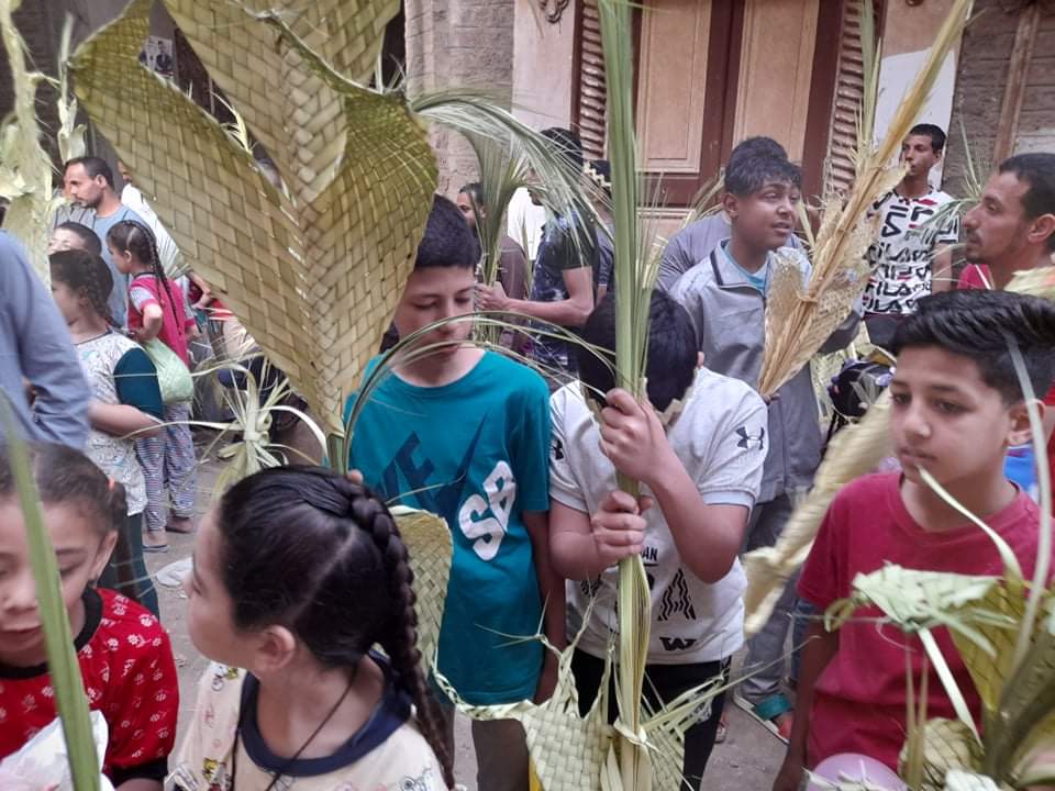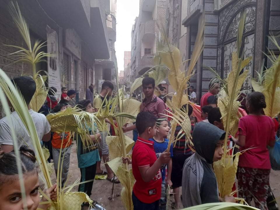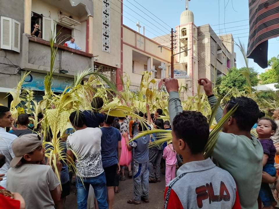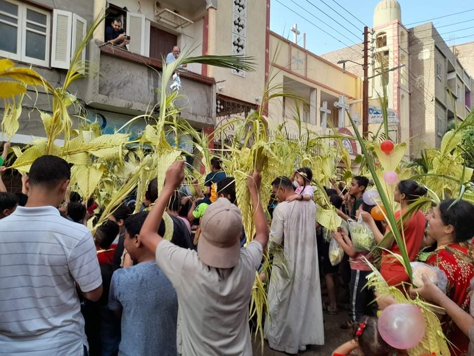 وشهد الاحتفال باحد الشعانين قيام الاباء الكهنة بالقرية برش المياة مصلي عليهم بعد نهاية الصلاة علي المصطفين امام الكنائس في مشهد حضاري رائع.