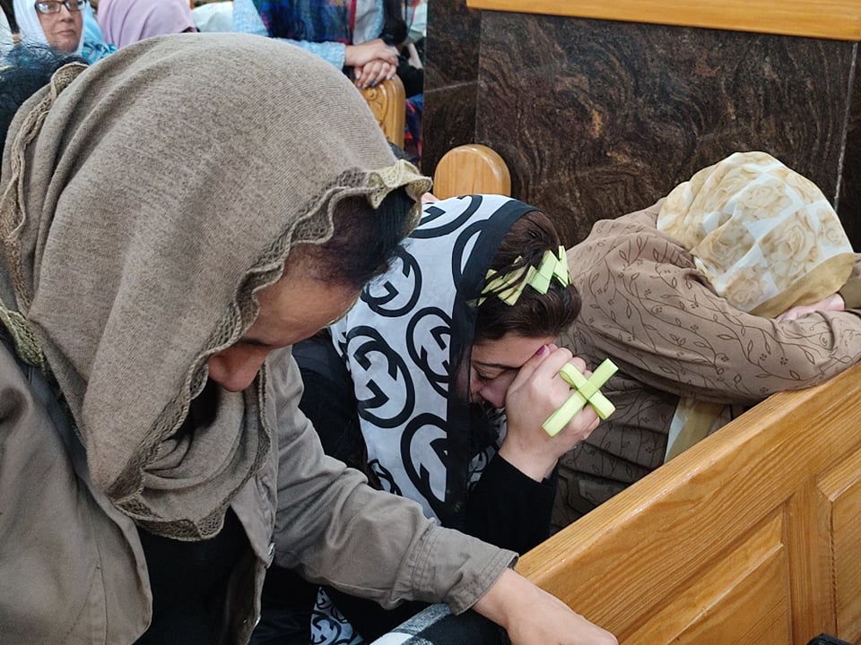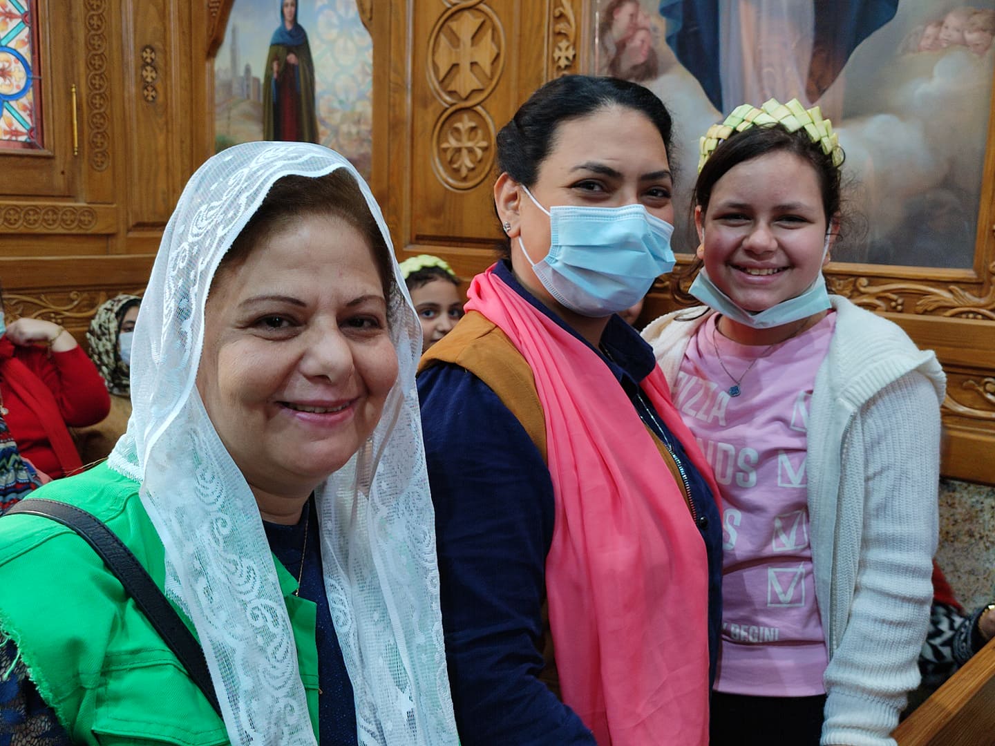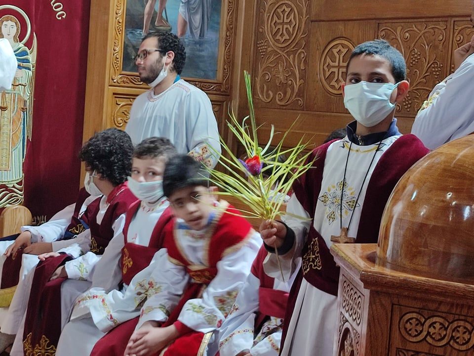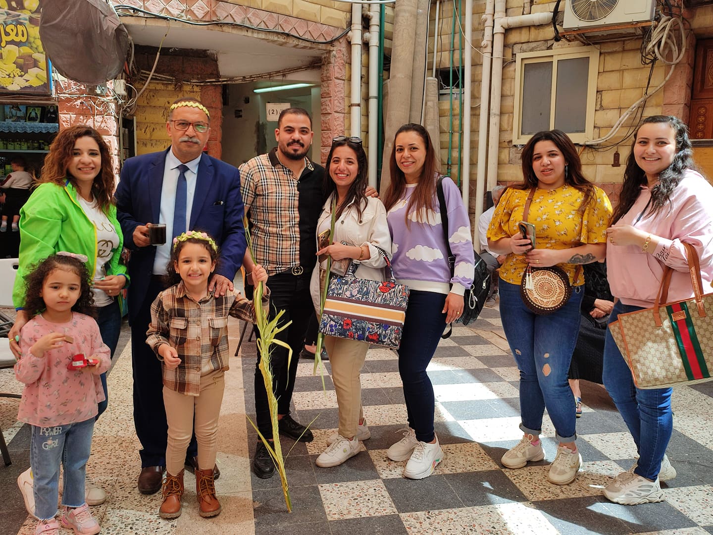 وأضافت احدي العائلات المتواجدة في الكنيسة منذ صباح باكر" اليوم جميل وجميع العائلات من كبار سن وأباء وأحفاد أيضا متجمعين في أجواء عائلية، ونقوم بتصميم ضفائر من الخوص وعمل أشكال كالإكليل والخواتم"