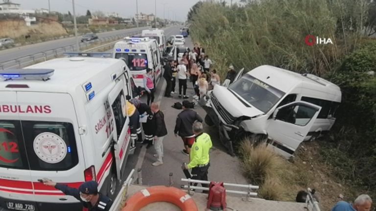 شهدت مدينة أنطاليا جنوبي تركيا حادثا مروعا أدى إلى اصابة 11 سائحا ألمانيا إثر انقلاب حافلة صغيرة كانت تقل السائحين.