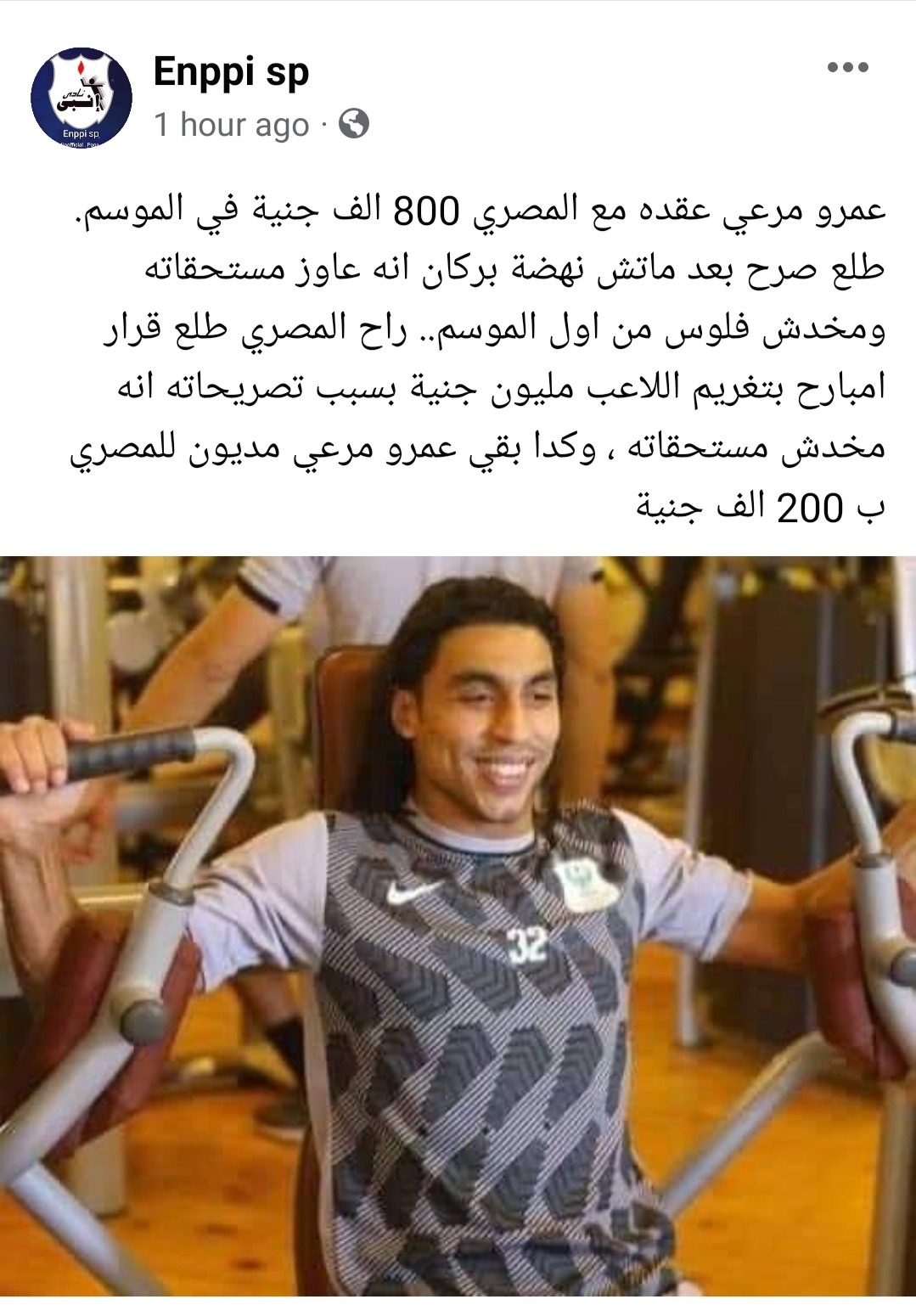علق مصدر مقرب من عمرو مرعي لاعب النادي المصري، علي ما تم تداوله عبر صفحات التواصل الاجتماعي، والتي تفيد بأن عقد مرعي 800 الف جنيه في الموسم.