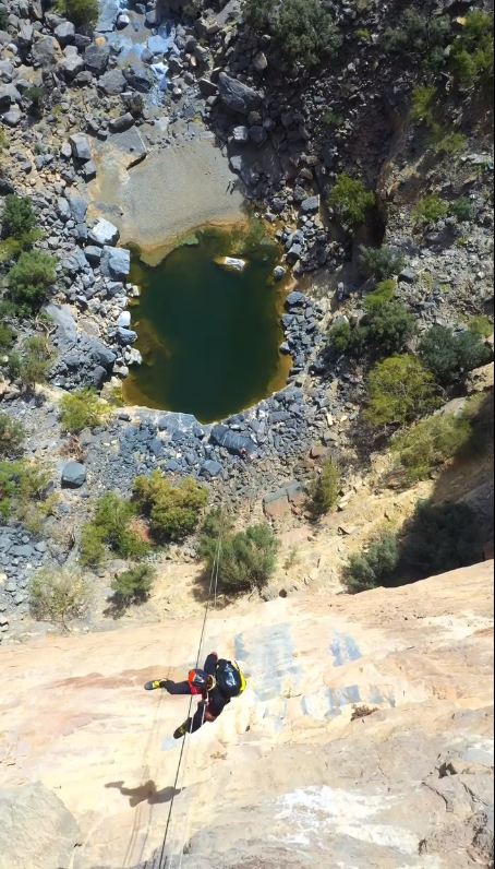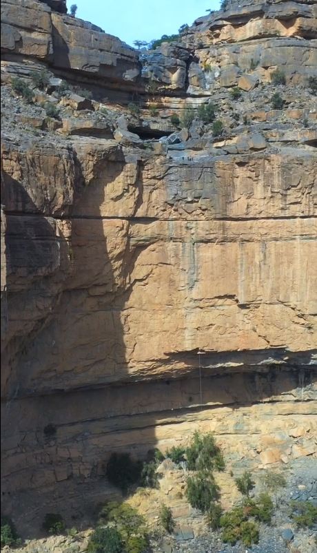 أقدم مرشد سياحي بمغامرة فريدة من نوعها بعد نزوله في ثاني أكبر فالق صخري في العالم في جبل شمس في محافظة الداخلية بولاية الحمراء في عمان.