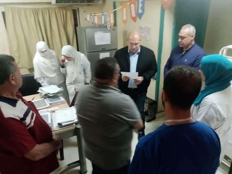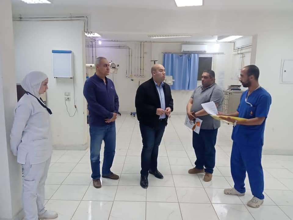 حيث تفقد نائب المحافظ أقسام الاستقبال والطوارئ والحضانات وأعمال إنشاء غرف العناية المركزة داخل المستشفى للوقوف على الحالة الإنشائية ومتابعة مراحل تنفيذ مشروع غرف العناية المركزة.