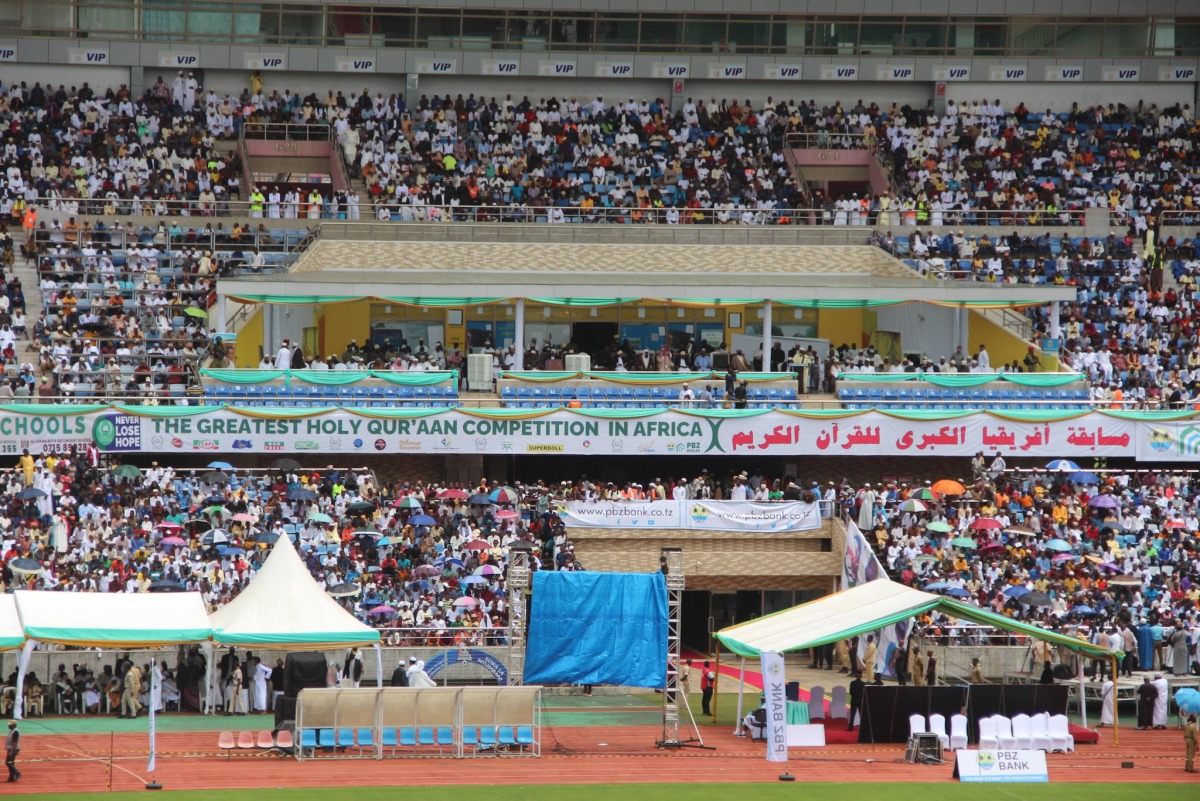 وفي مدينة دار السلام بتنزانيا، حيث أكبر مسابقة لحفظ وتلاوة القرآن في أفريقيا، جلست حشود غفيرة وغطت مدرجات الملعب لحضور مسابقة قراءة القرآن الدولية.