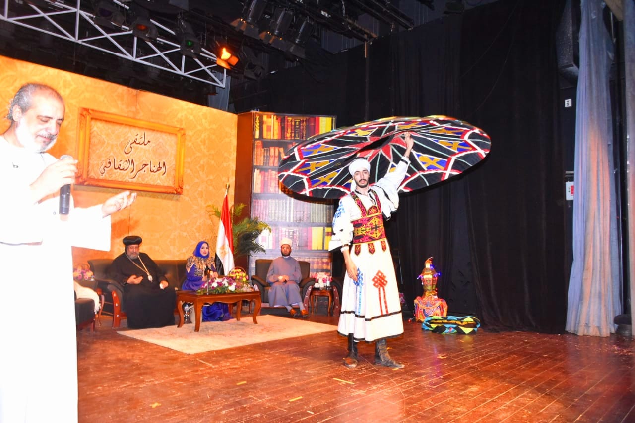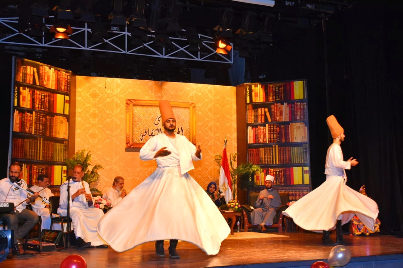 واستمتع جمهور الملتقى بفقرات فنية لفرقة المولوية بقيادة الفنان الدكتور عامر التونى، من التراث المولوى المصرى بما يشمله من موشحات وابتهالات موروثة..