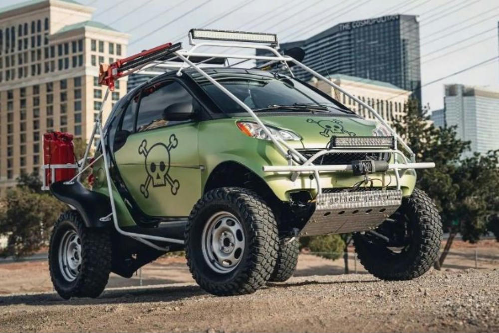 حصلت سيارة سمارت فور تو، المدن الصغيرة على ترقيات عديدة جعلتها وحشًا على الطرق الوعرة، حيث تتميز بإطارات مقاس 30 بوصة ملفوفة على جنوط فولاذية مقاس 15 بوصة، كما تتميز بنظام تعليق باجا يرفع السيارة بمقدار 8 بوصة، كما تم قطع الرفارف الأمامية، ودفع العجلات للخارج وتغطيتها برفارف بلاستيكية جديدة تمامًا.