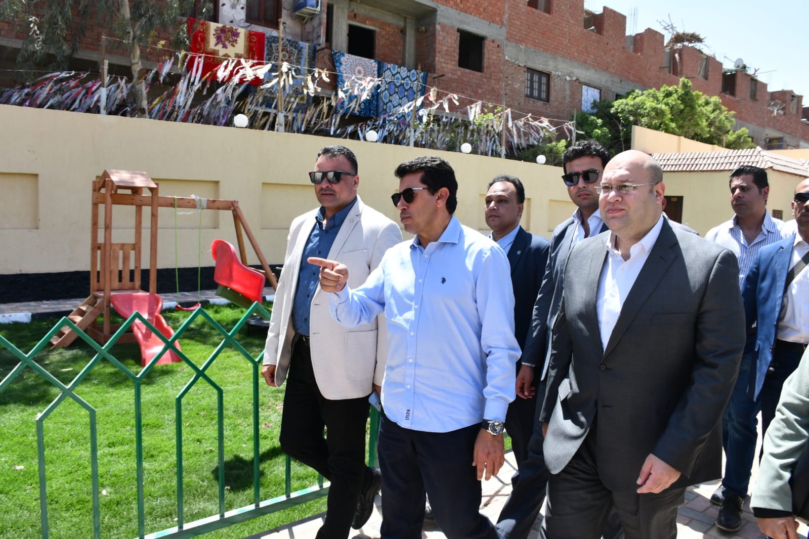 رافق الوزير خلال الجولة كل من اللواء عبد الرحمن شلش مدير مديرية الشباب والرياضة بالجيزة، وايمان عبد الجابر رئيس الإدارة المركزية لمراكز الشباب والهيئات الشبابية، وسونيا عبد الوهاب رئيس الادارة المركزية للتنمية الرياضية، وغادة جمال مدير عام الإدارة العامة للقاعدة الشعبية بالوزارة.