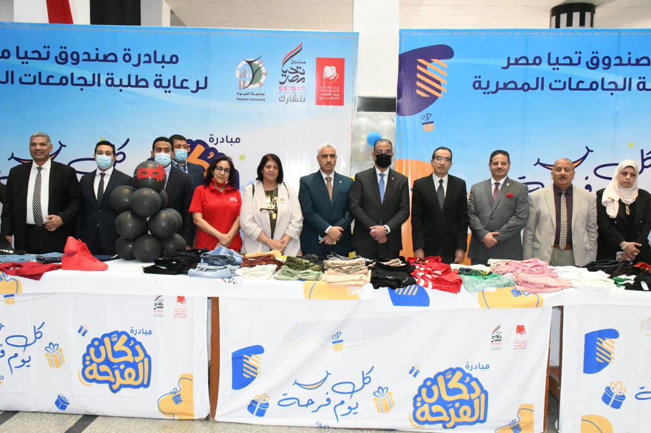 افتتح الدكتور أحمد الأنصاري محافظ الفيوم، والدكتور مجدي حتاتة رئيس جامعة الفيوم، معرض ملابس "دكان الفرحة" الذي ينظمه صندوق تحيا مصر، بجامعة الفيوم في إطار تنفيذ المرحلة الثالثة من مبادرة دكان الفرحة بالتعاون مع بنك الكساء المصري، لتوفير الملابس الجديدة لطلاب جامعة الفيوم ممن أُعدت لهم بحوث حالة اجتماعية، استعدادًا لاستقبال عيد الفطر المبارك.