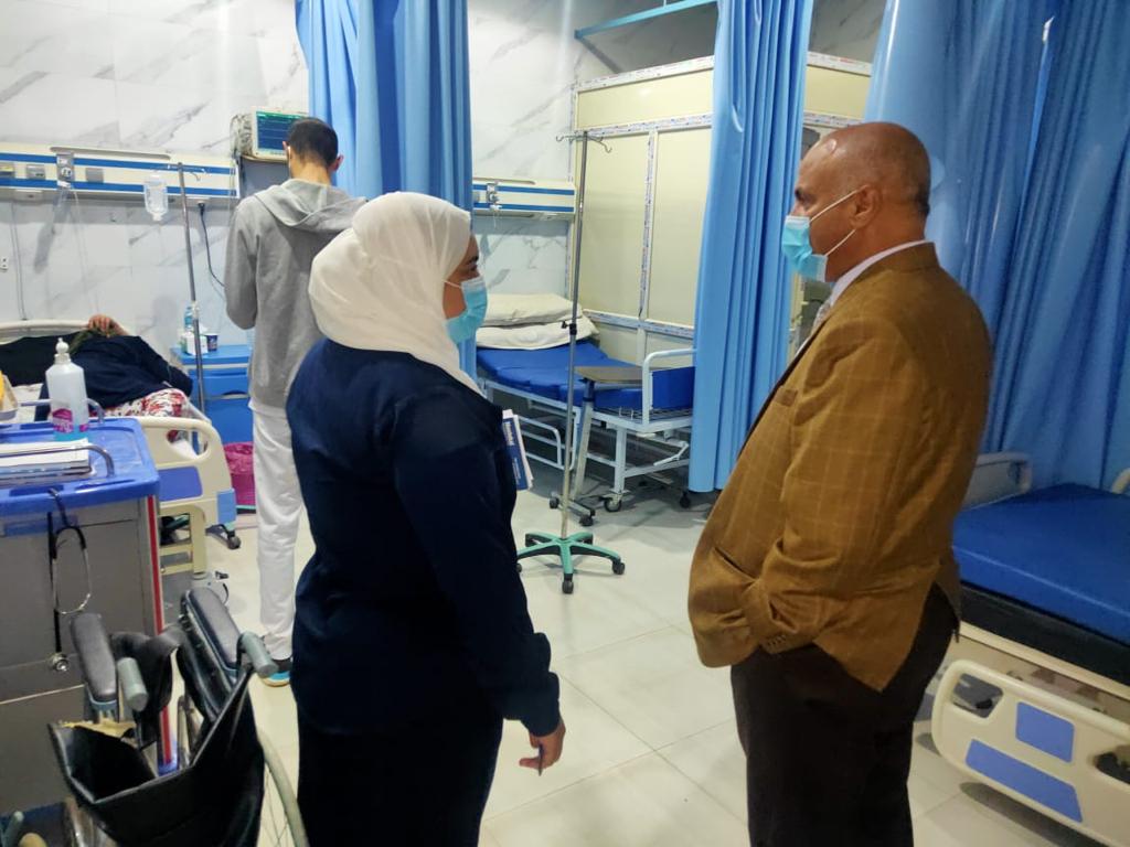 كما اطمأن علي صحة وسلامة المرضى بقسم الاستقبال والأقسام الداخلية والعناية ومتابعة سير العمل والالتزام بالإجراءات الاحترازية والوقائية وتطبيق سياسات مكافحة العدوى وتأكد من توافر المستلزمات الطبية والأدوية اللازمة حرصا منه على صحة المواطنين.