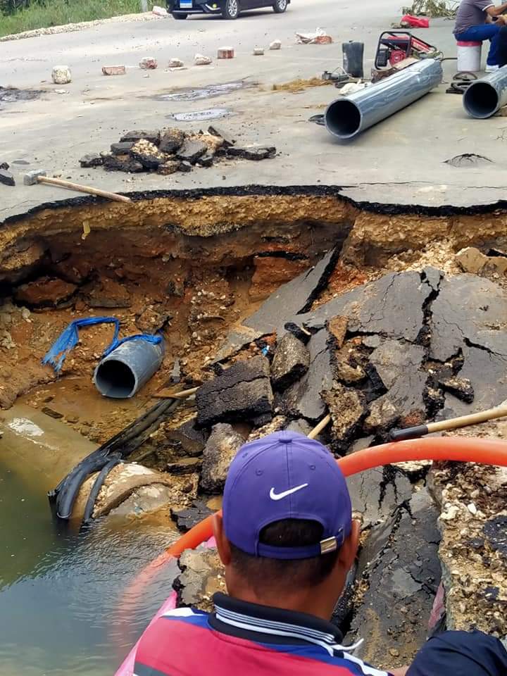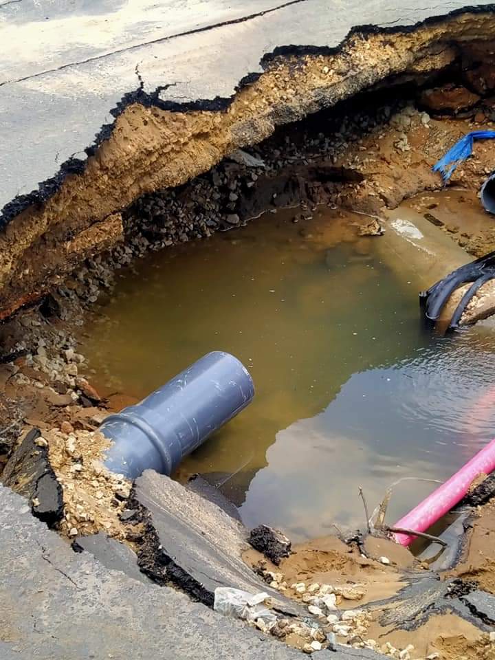 وكان عدد من الأهالي بمنطقة ابو عطوة قد وجهوا استغاثة بعد حدوث هبوط أرضي مفاجئ بإحدى الشوارع بالمنطقة مما إلى غرق إحدى جوانب الطريق بسبب انفجار خط مياه.