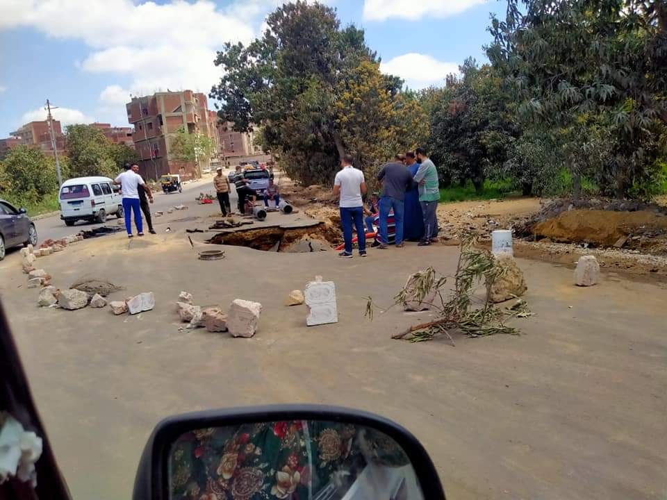 هبوط أرضي بسبب انفجار خط مياه في الإسماعيلية | صور