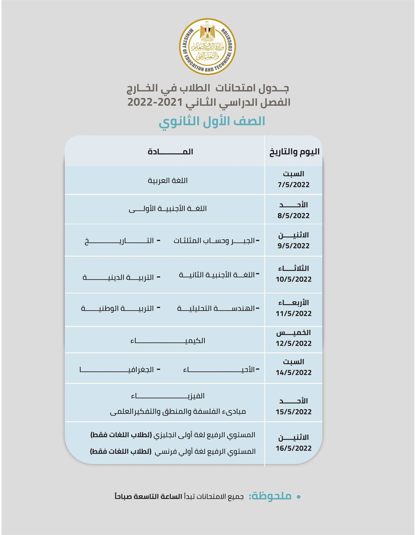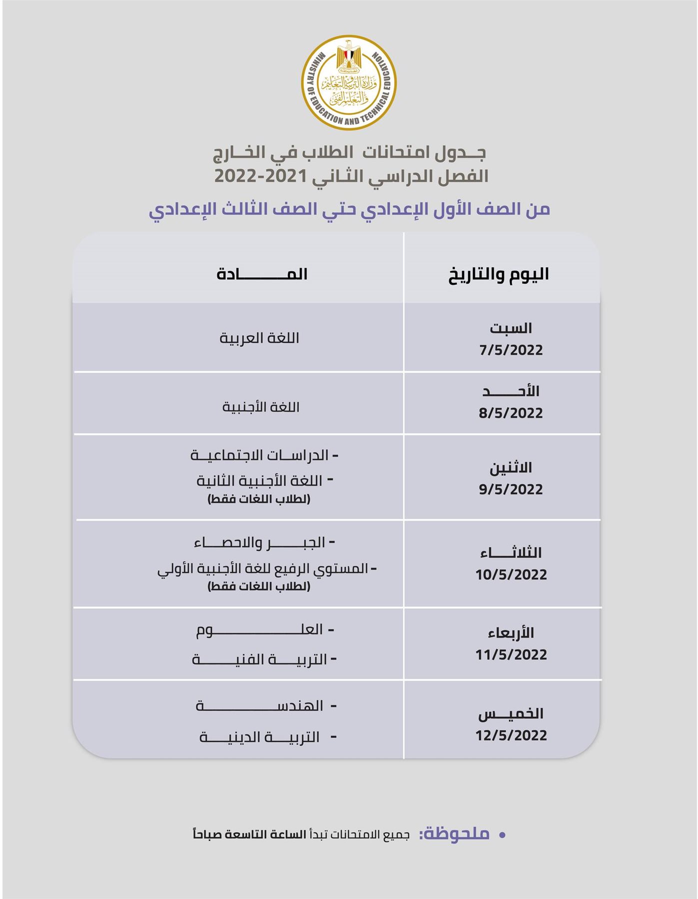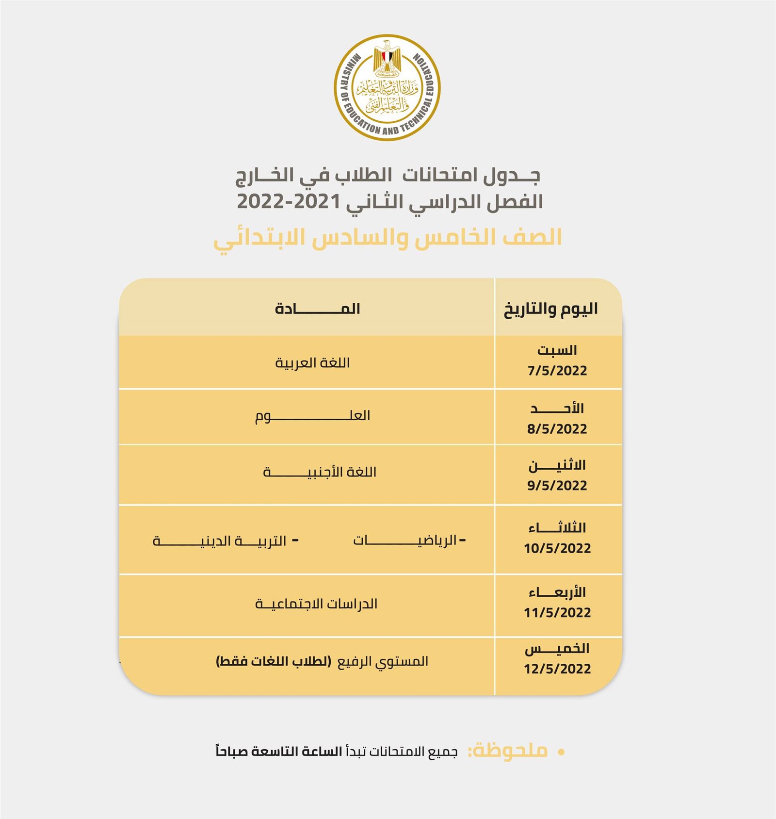 تبدأ 7 مايو.. جدول اختبارات نهاية العام لطلاب مصر بالخارج لجميع الصفوف
