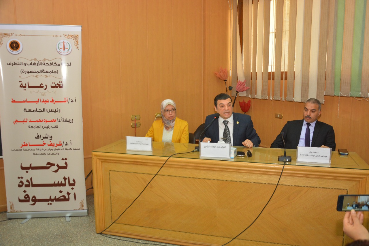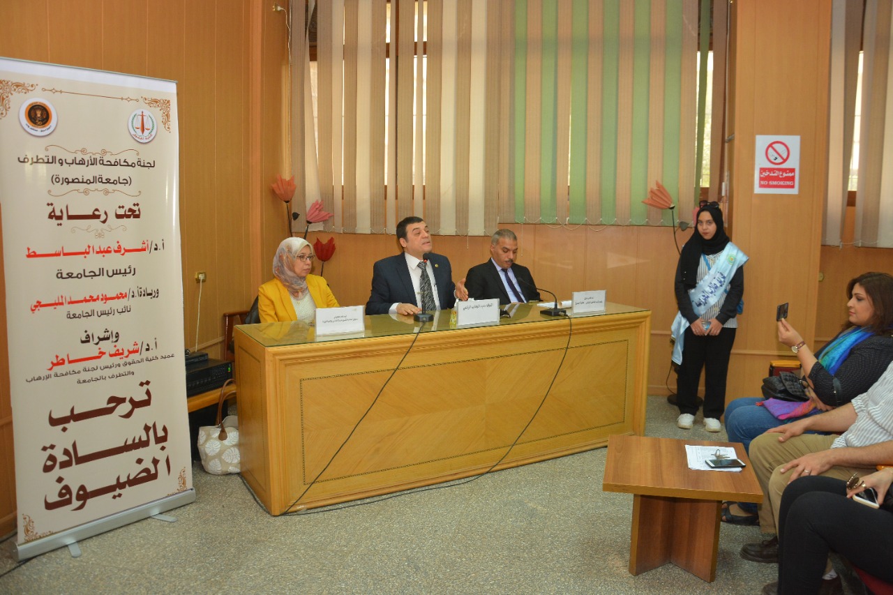 وتنسيق الدكتور تامر محمد صالح _ أستاذ ورئيس قسم القانون الجنائي ونائب رئيس لجنة مكافحة الارهاب والتطرف بالجامعة، وإيماء الي توجيهات الرئيس عبدالفتاح السيسي_ رئيس الجمهورية بشأن محاربة المفاهيم والأفكار غير السوية ومواجهة الفكر المتطرف والإرهاب في مصر، وحرصا من الجامعة علي زيادة وعي الشباب الجامعي وثقل الملكات الشخصية لهم والارتقاء بأفكارهم.