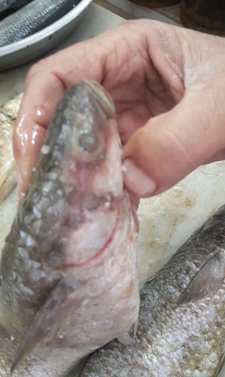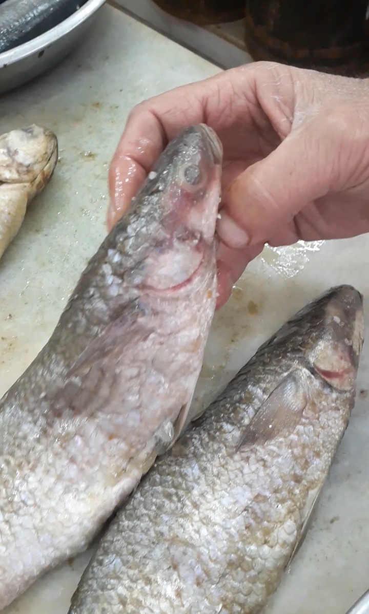 - نغسل السمك جيدًا أسفل الماء الجاري، والتخلص من أي رمال داخل خياشيمه.