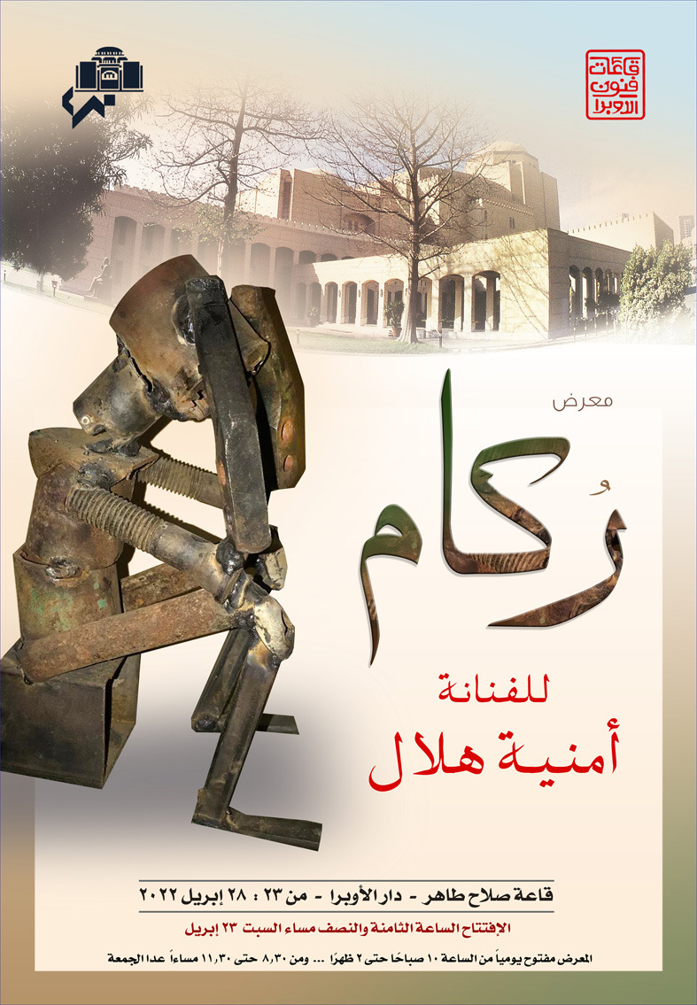 يفتتح الدكتور مجدي صابر رئيس دار الاوبرا فى الثامنة والنصف مساء السبت ٢٣ إبريل بقاعة صلاح طاهر معرض بعنوان "ركام" للفنانة أمنية هلال الذى يضم ما يقرب من ٣٠ قطعة من الحديد الخردة والسلك..