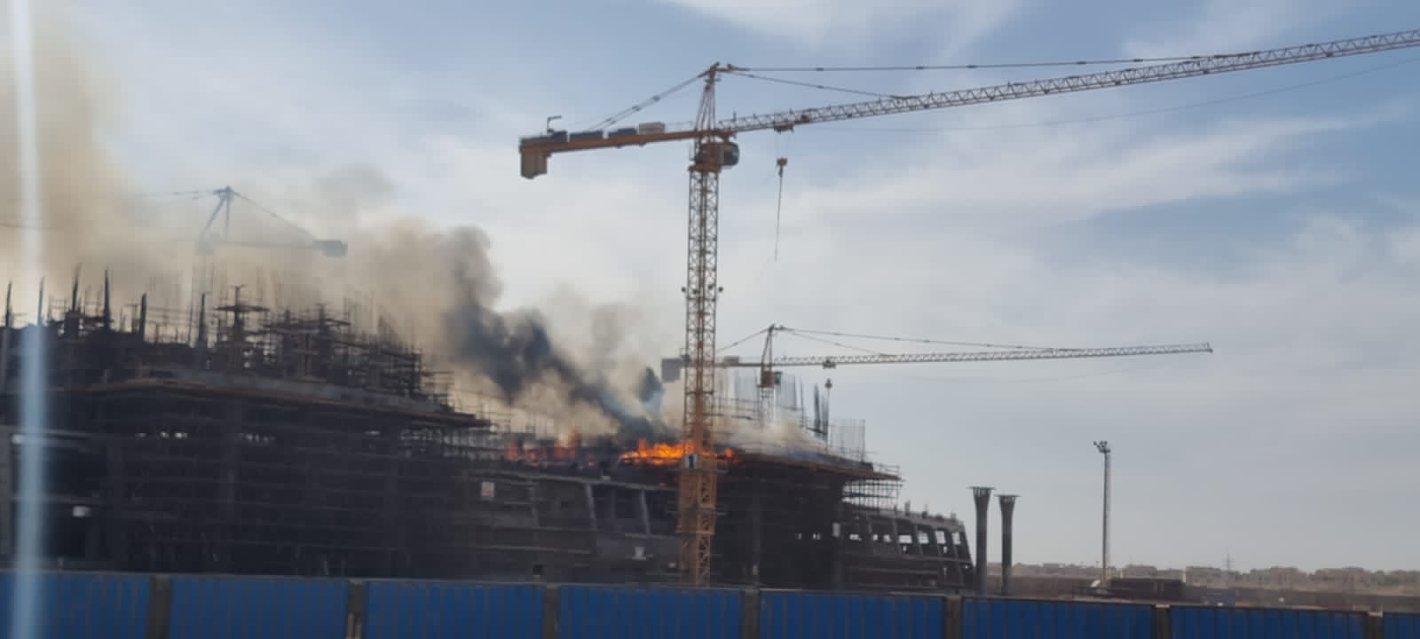 الصور الأولى لحريق هائل داخل مستشفى مجدي يعقوب تحت الإنشاء في 6 أكتوبر