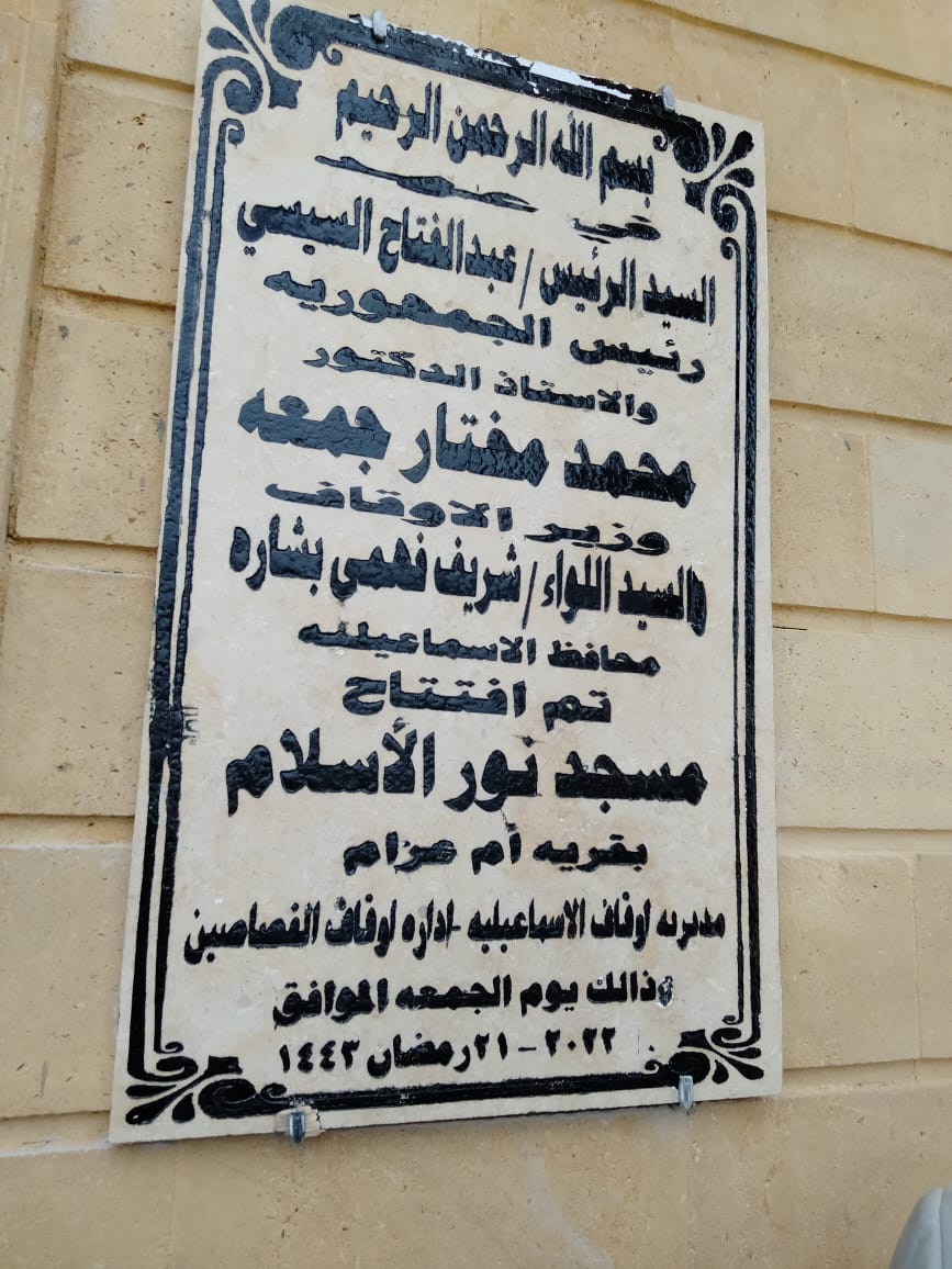 افتتح فضيلة الدكتور إسماعيل أحمد إسماعيل وكيل وزارة الأوقاف في محافظة الإسماعيلية، اليوم الجمعة، يرافقه عدد من قيادات المديرية، مسجد نور الإسلام الواقع في قرية أم عزام التابعة لمركز ومدينة القصاصين، وذلك ضمن خطة المديرية لإعمار بيوت الله.