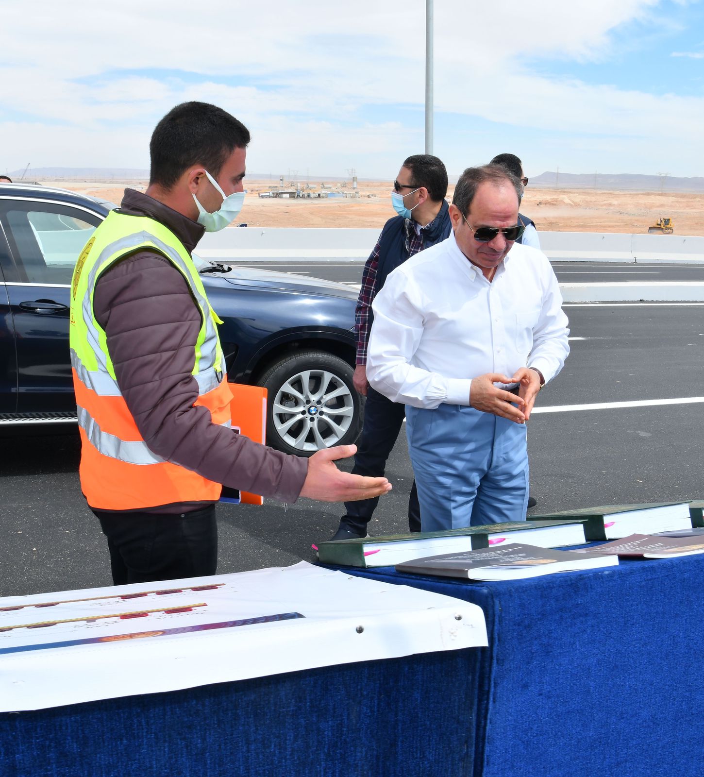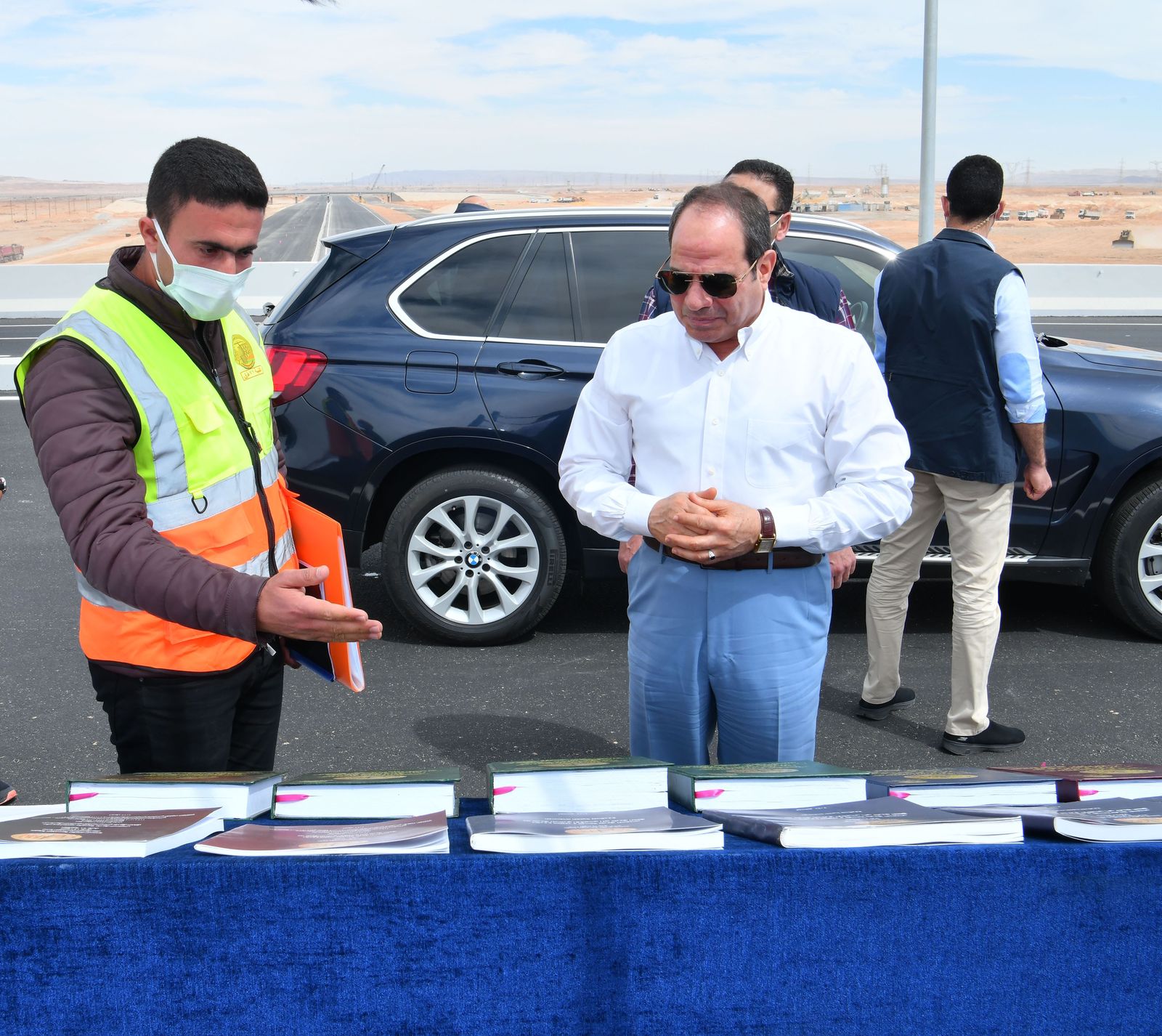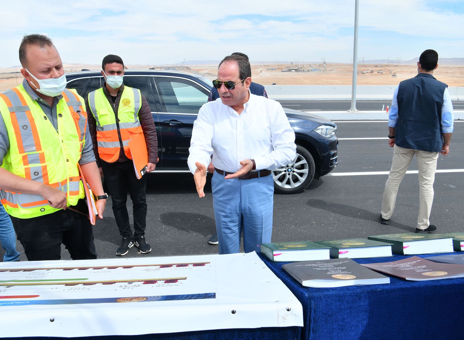 وأضاف متحدث الرئاسة أن طريق السويس يبلغ طوله ١٠٩ كم ويحتوي على ٢٤ كوبري وهو أحد الشرايين المرورية الرئيسية الهامة بالدولة لربطه مناطق شرق القاهرة بباقي مناطق الجمهورية، ويعتبر المدخل الشمالي الرئيسي للعاصمة الإدارية الجديدة ويشكل مع الطرق العرضية المتقاطعة معه شبكة محاور متكاملة تعتبر بمثابة شرايين للتنمية المستدامة تساعد على سرعة وسهولة تنقل المواطنين وإنهاء الزحام المروري وتقليل الانبعاثات وتوفير الطاقة، كما تساهم في زيادة حركة التدفق التجاري وحجم الاستثمارات