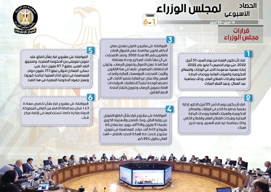 6 أيام إجازة عيد الفطر.. أبرز قرارات مجلس الوزراء الصادرة خلال أسبوع |إنفوجراف