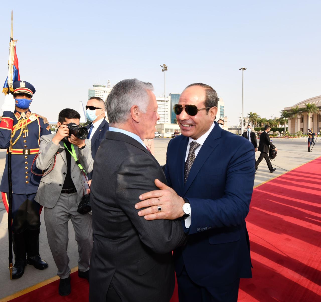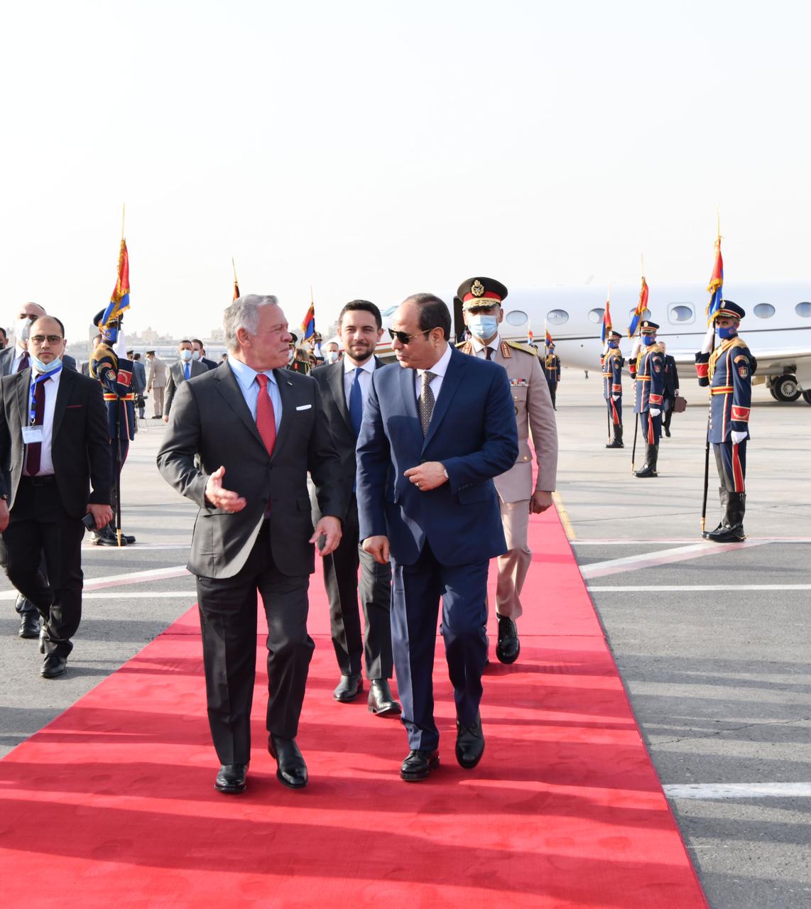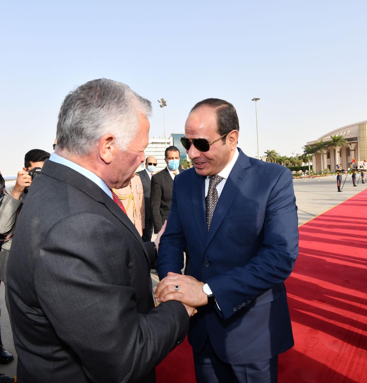 من جانبهما، ثمَّن ضيفا مصر الروابط الوثيقة التي تجمع بين البلدان الثلاثة، مؤكدين الحرص على الارتقاء بالتعاون مع مصر إلى مستوى الشراكة الإستراتيجية، وذلك لمصلحة الشعوب الشقيقة في الدول الثلاث، وبما يعظم استفادتها من الفرص والإمكانات الكامنة في علاقات التعاون بينهم، ويضيف مزيدًا من الزخم إلى هذا التعاون المثمر في القطاعات المختلفة، فضلًا عن كون هذه العلاقات تمثل حجر أساس للحفاظ على الأمن والاستقرار الإقليمي وإعادة التوازن للمنطقة، وذلك في ضوء الأهمية المحورية لمصر والأردن والإمارات إقليميًّا ودوليًّا.