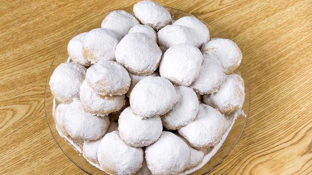 -يخبز الكحك في فرن متوسط الحرارة حتي يصير لونه ذهبي ويرفع من الفرن وبحرص يرفع من الصاجات ويترك حتي يبرد ويرش بالسكر البودرة.