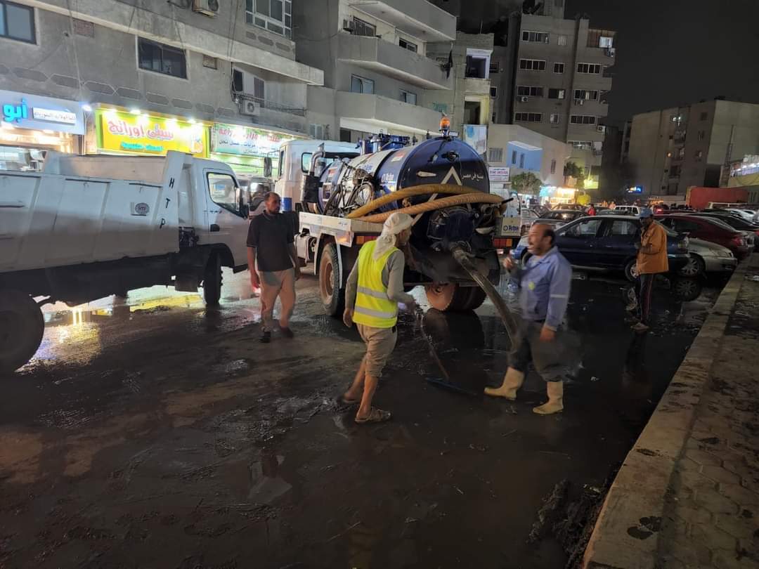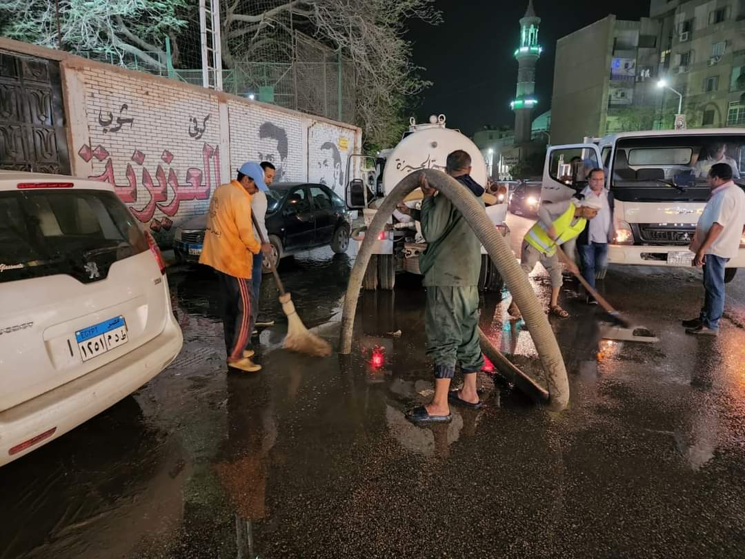 واصل حى العمرانية شفط تراكمات المياه المتراكمة بشارع كفر طهرمس امام سور نادي الطالبية بالتعاون مع مرفق المياه وهيئة النظافة والتجميل بتواجد سمير عويضة رئيس حى العمرانية.